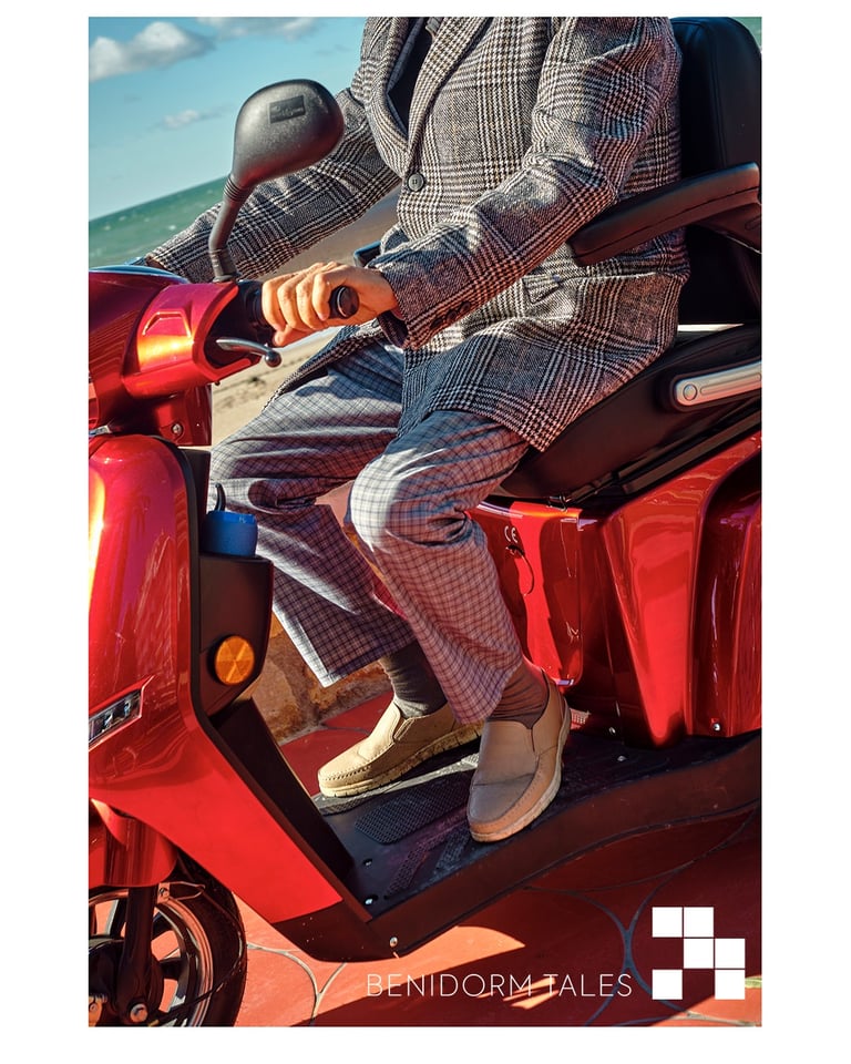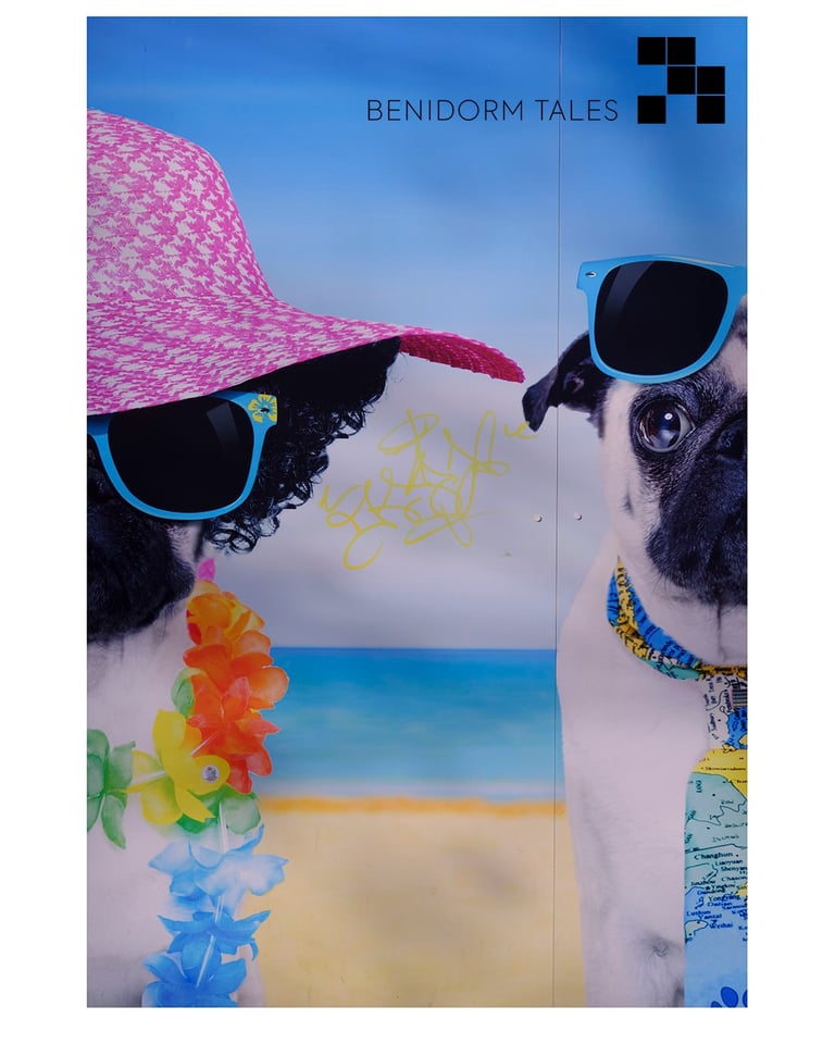 Tenía curiosidad por Benidorm. La primera vez que, cámara en mano, recorrí el Paseo Marítimo, me sorprendió la naturalidad con la que la vida transcurre en la ciudad. Todo parece formar parte de un universo propio y espontáneo en el que nada resulta extraño. Un paraguas colgando de un cable, un cocodrilo ofertando el menú del día, personas de todas las edades con el pelo teñido de colores vibrantes y vestidas con llamativos impermeables, trileros paseando su improvisada mesa de cartón y sesiones de aeróbic en la playa, con alguna que otra lipotimia incluida, conviven con desenvoltura en el día a día.